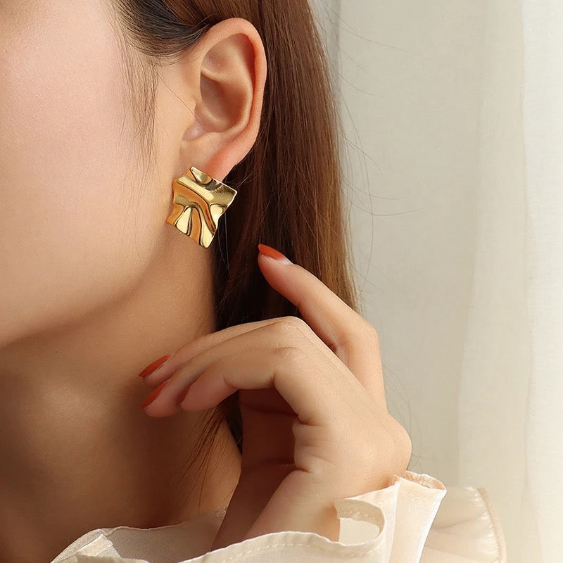 Abstract Crumpled Stud Earrings – Gold-Tone Imitation Jewellery
